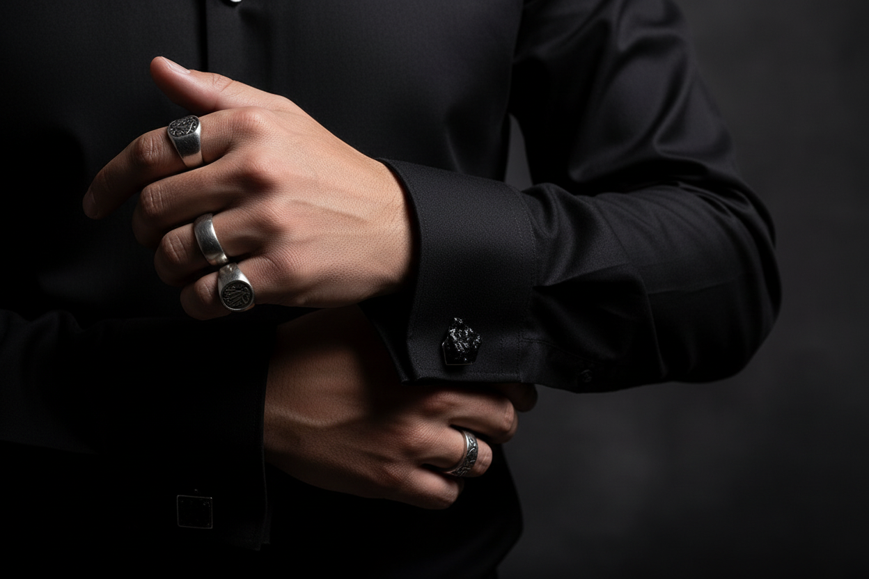 "Kuolmi cufflinks are made of stainless steel and coal. The design of the movable base is comparable to the traditional bases used by miners in the past."