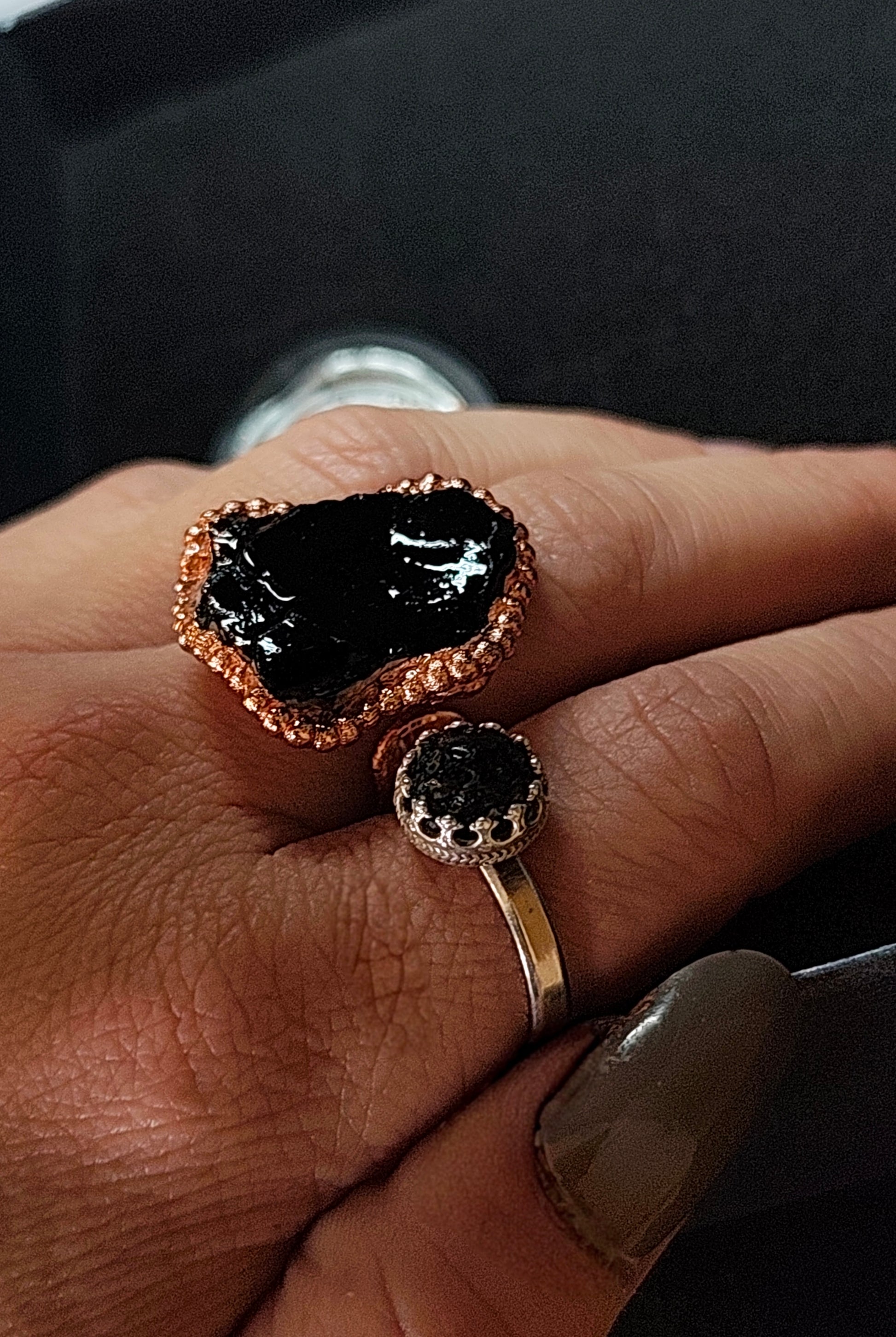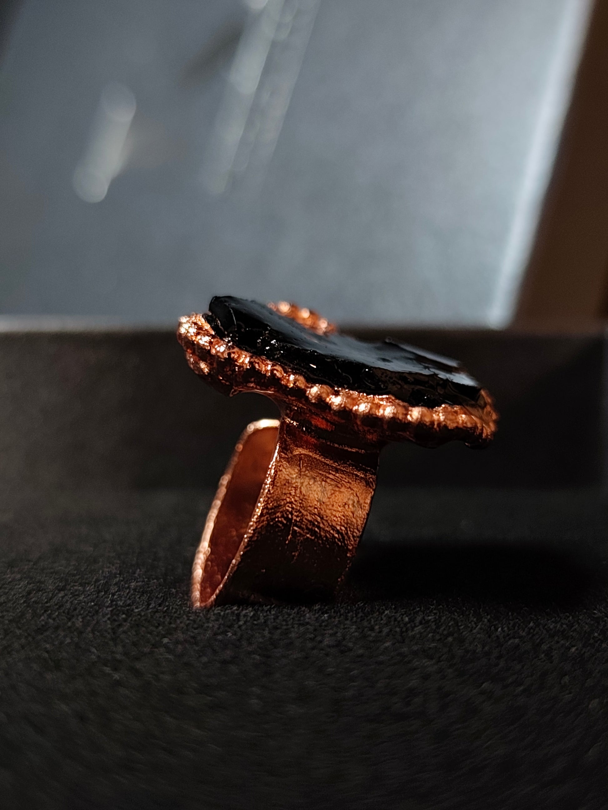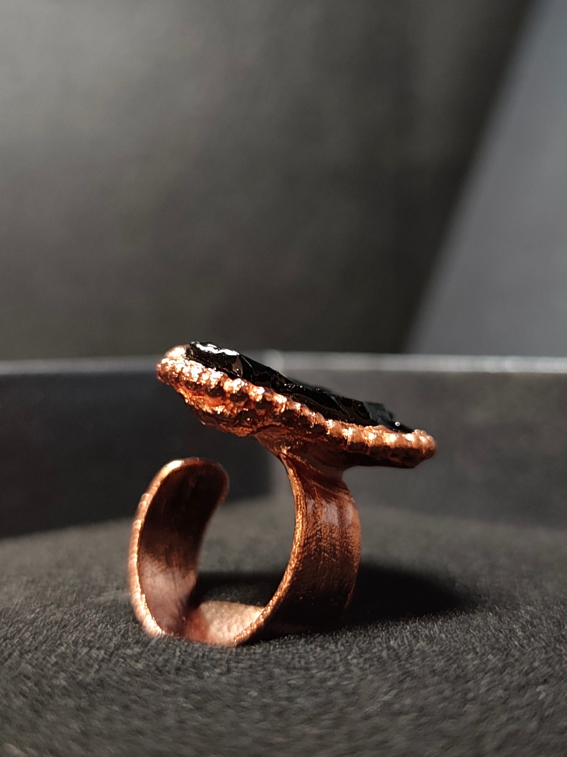 Prstan Nature vas bo prevzel in pustil brez besed. Je poseben, unikatni kos nakita v kombinaciji baročne polnosti bakra in gotske črnine- ujete v današnji čas.