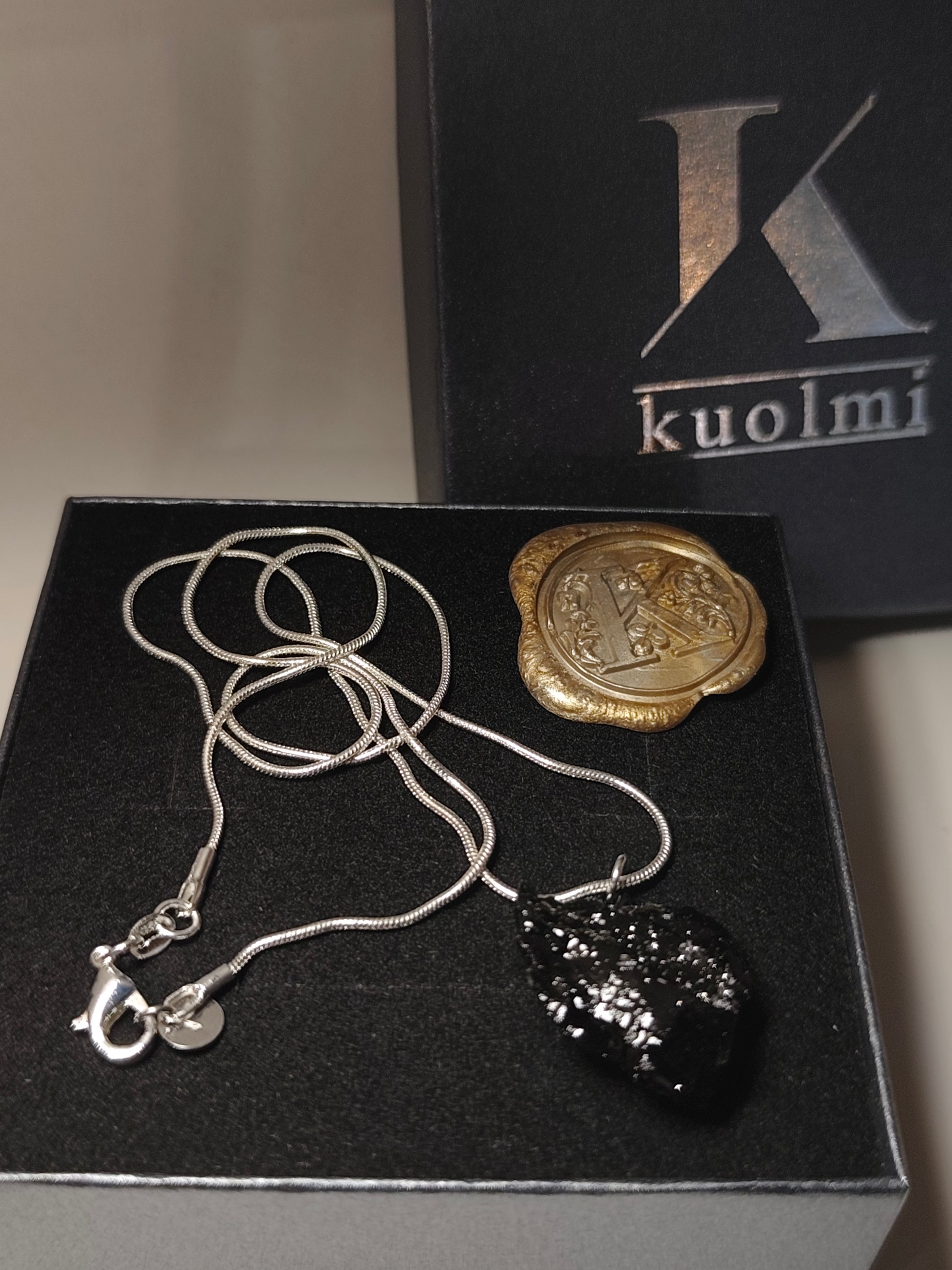 Verižica KUOLMi je izdelana iz 10 millionov let starega premoga. Zaradi svoje organske oblike je vsak kos neponovljiv ter drugačen.